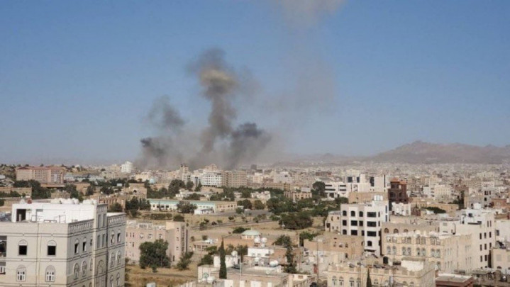 2024年12月31日,也门萨那市中心一处军事基地遭到空袭后冒出浓烟(手机照片)。新华社发